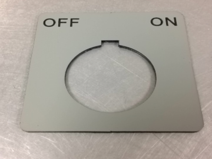 STANDARD; SIZE 30 MM; SHAPE SQUARE; LEGEND OFF-ON; BLACK LEGEND; BACKGROUND COLOR SILVER; PLASTIC; 2 1/4 INCH W X 2 1/4 INCH H LEGEND PLATE SIZE; USED ON CLASS 9001 TYPE K/SK SERIES SELECTOR SWITCH/SELECTOR PUSHBUTTON; NEMA 1/2/3/3R/4/4X/6/12/13